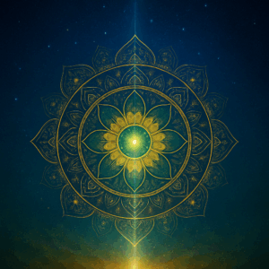 Wenn du dich in dieses Mandala versenkst, begegnest du deinem eigenen Licht. Du wirst zur Insel aus Liebe, getragen von Mutter Erde, berührt vom Kosmos. Ein heiliger Tanz zwischen Oben und Unten, zwischen deinem Herzen und den Sternen.